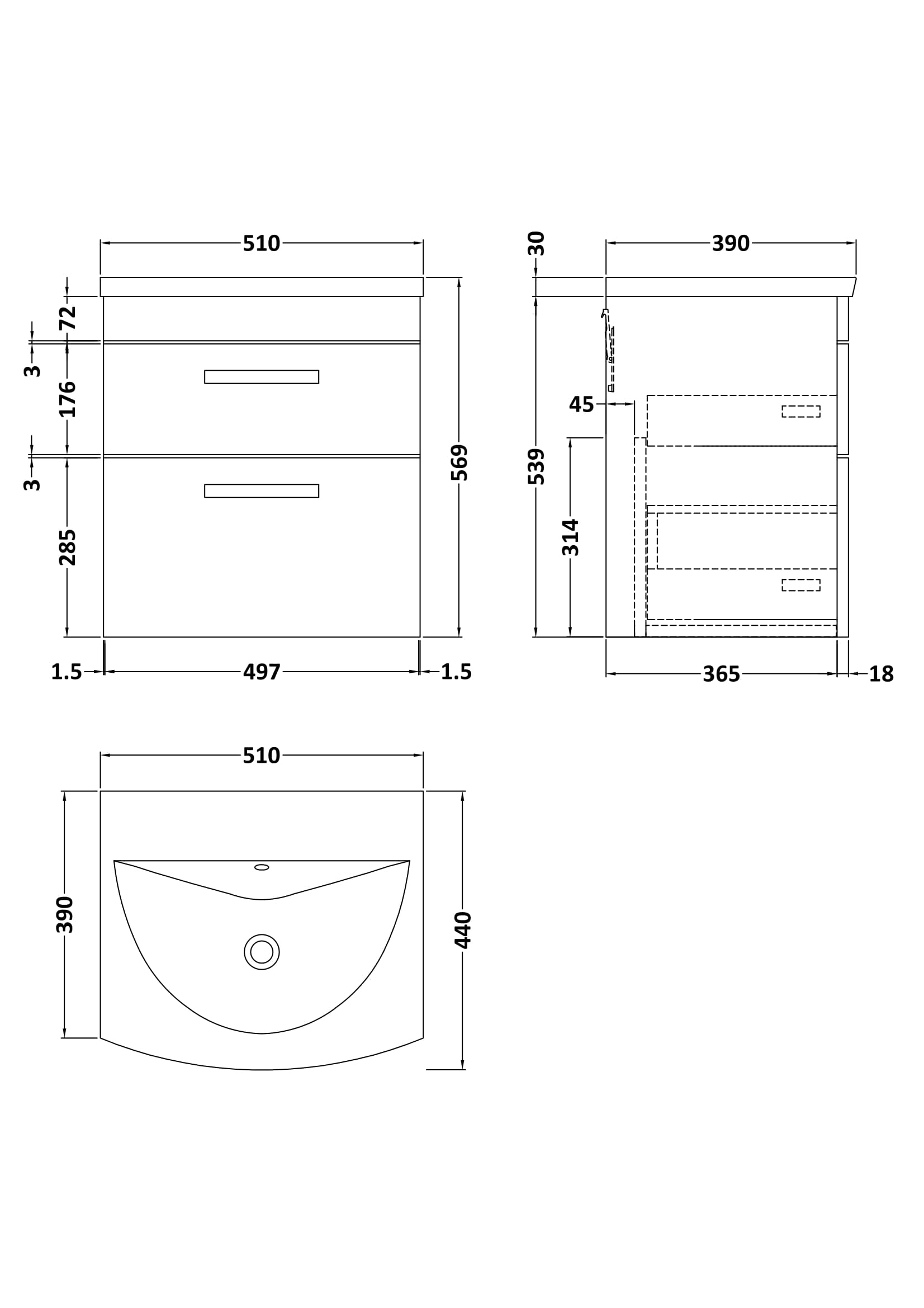 Athena Wall Hung 2 Drawer Vanity With Curved 1 Tap Hole Basin 500mm
