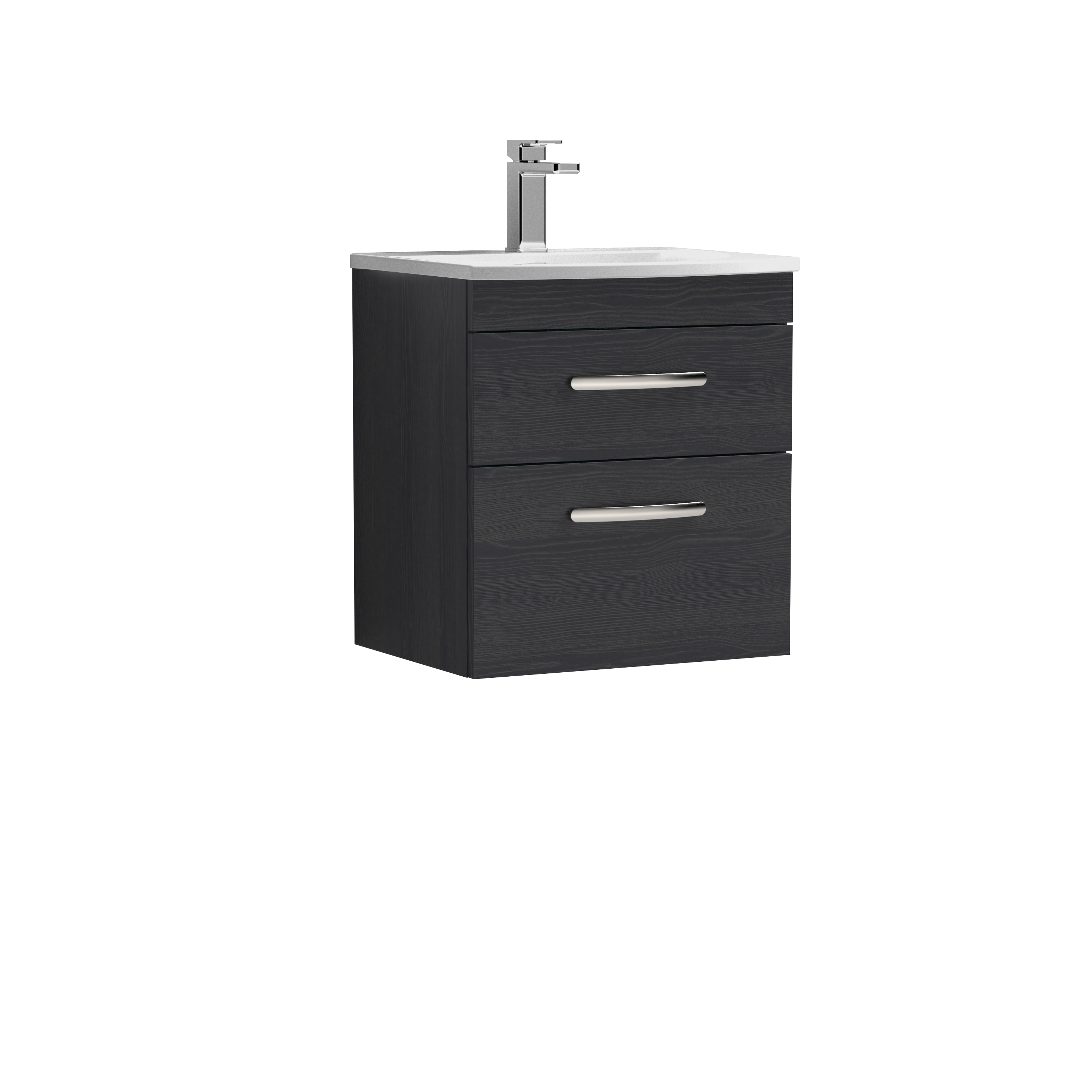 nuie Athena Wall Hung 2 Drawer Vanity With Curved 1 Tap Hole Ceramic Basin 500mm - Hacienda Black