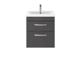 nuie Athena Wall Hung 2 Drawer Vanity With Curved 1 Tap Hole Ceramic Basin 500mm - Gloss Grey