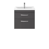 nuie Athena Wall Hung 2 Drawer Vanity With Curved 1 Tap Hole Ceramic Basin 600mm - Gloss Grey