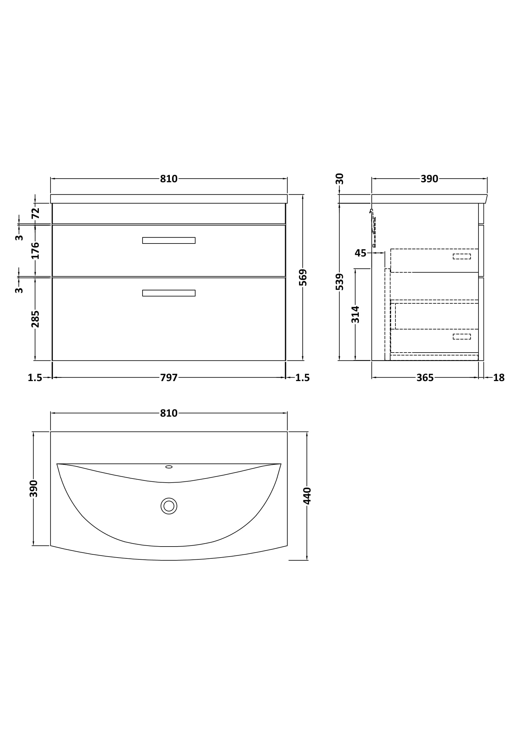 Athena Wall Hung 2 Drawer Vanity With Curved 1 Tap Hole Basin 800mm