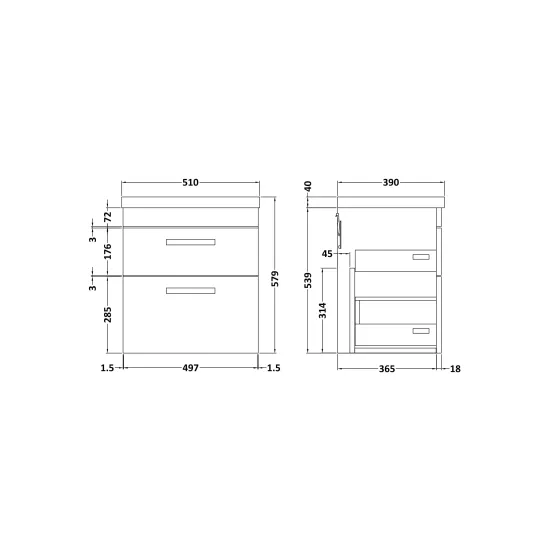 Athena Wall Hung 2 Drawer Vanity With Mid-Edge 1 Tap Hole Basin 500mm