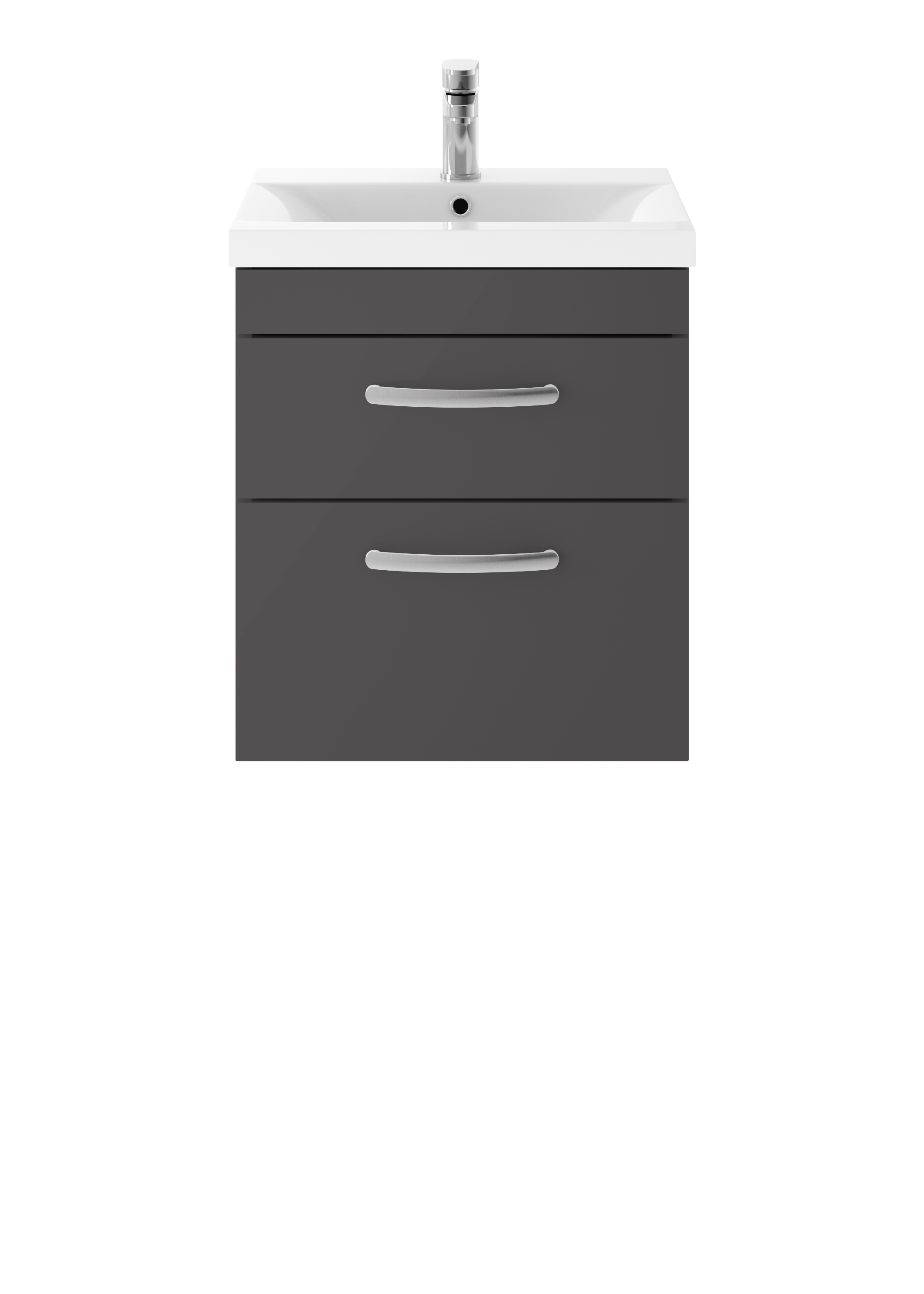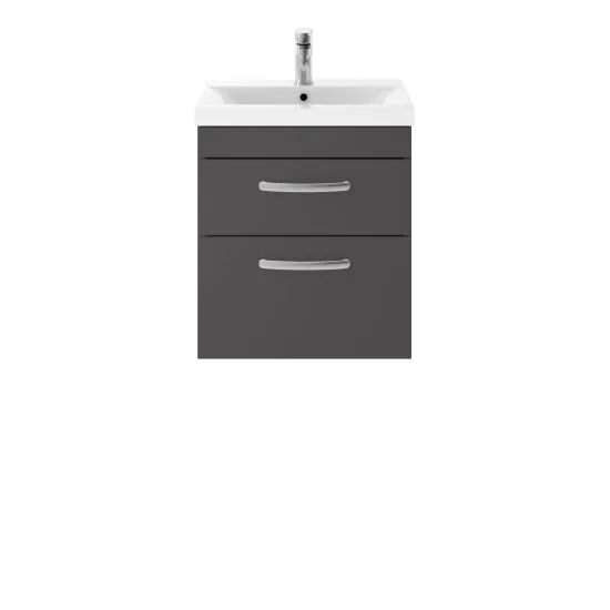 nuie Athena Wall Hung 2 Drawer Vanity With Mid-Edge 1 Tap Hole Ceramic Basin 500mm - Gloss Grey