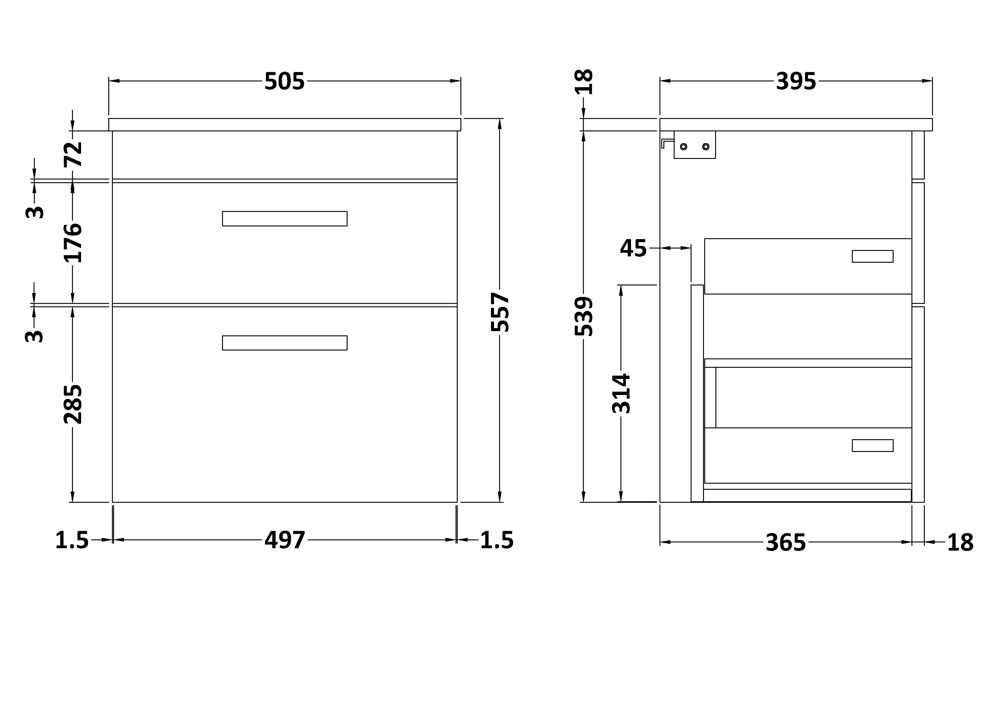 Athena Wall Hung 2 Drawer Vanity With Minimalist 1 Tap Hole Basin 500mm