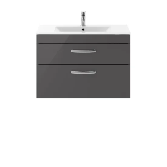 nuie Athena Wall Hung 2 Drawer Vanity With Minimalist 1 Tap Hole Ceramic Basin 800mm - Gloss Grey