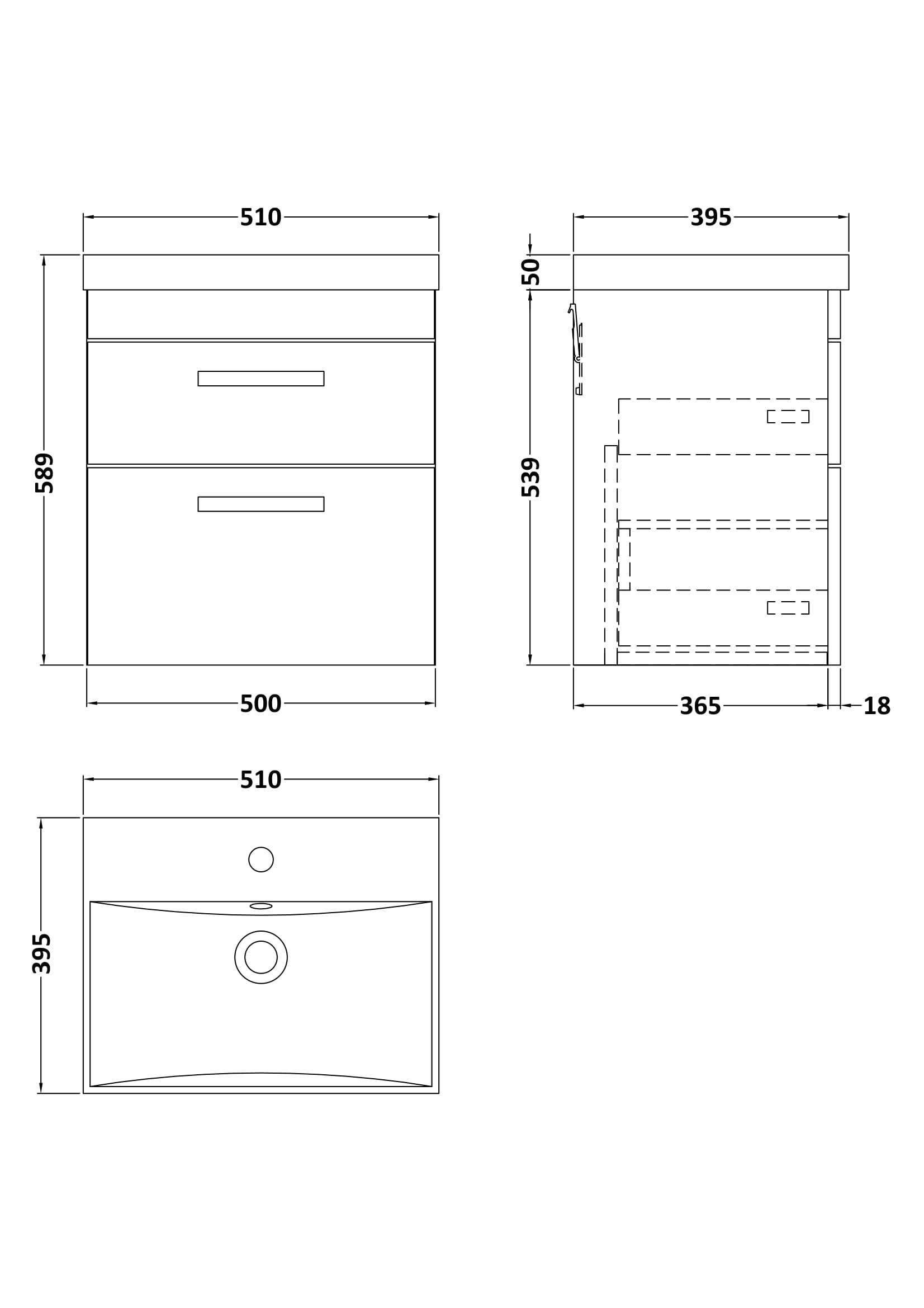 Athena Wall Hung 2 Drawer Vanity With Thin-Edge 1 Tap Hole Basin 500mm