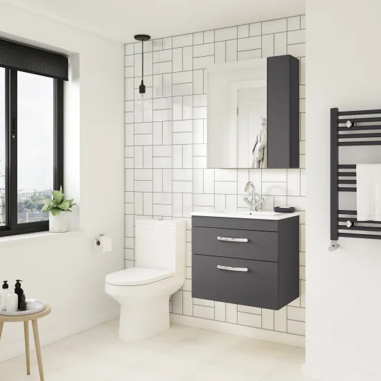 This sleek gloss grey finish compliments any modern bathroom and creates a designer look. This wall hung unit creates more space in your bathroom giving the illusion of a bigger bathroom. This unit has soft close drawers which limits the daily wear and tear and provides a quieter closing action. Colour co-ordinate your unit with a gloss grey WC unit. Supplied with high quality vitreous china basin.