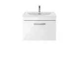 This sleek gloss white finish compliments any modern bathroom and creates a designer look. This wall hung unit creates more space in your bathroom giving the illusion of a bigger bathroom. This unit has soft close drawers which limits the daily wear and tear and provides a quieter closing action. Colour co-ordinate your unit with a gloss white WC unit. Supplied with high quality double polymarble basin.