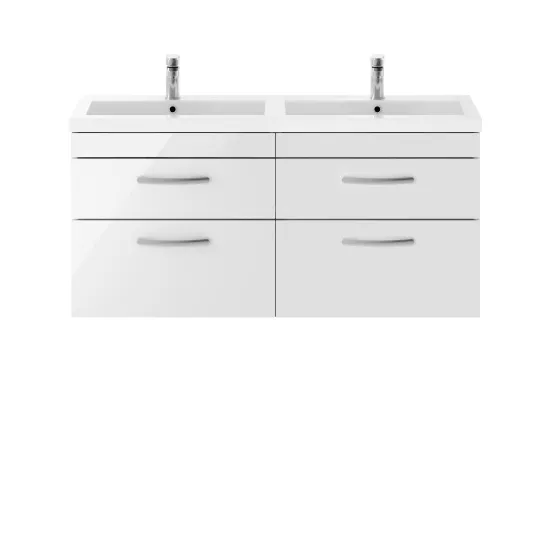 nuie Athena Wall Hung 4 Drawer Vanity With Twin Polymarble Basin 1200mm - Gloss White