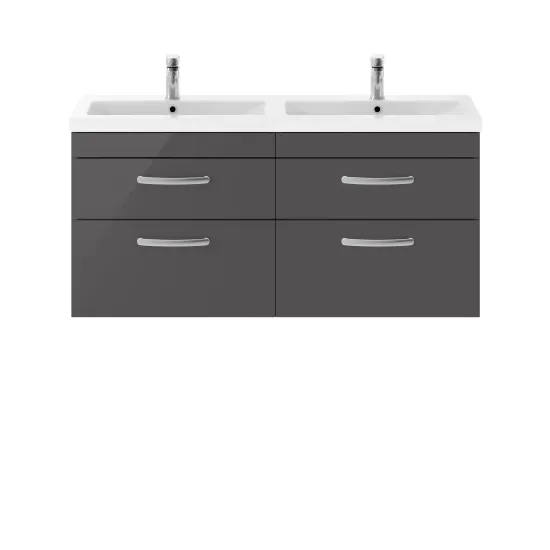 nuie Athena Wall Hung 4 Drawer Vanity With Twin Ceramic Basin 1200mm - Gloss Grey