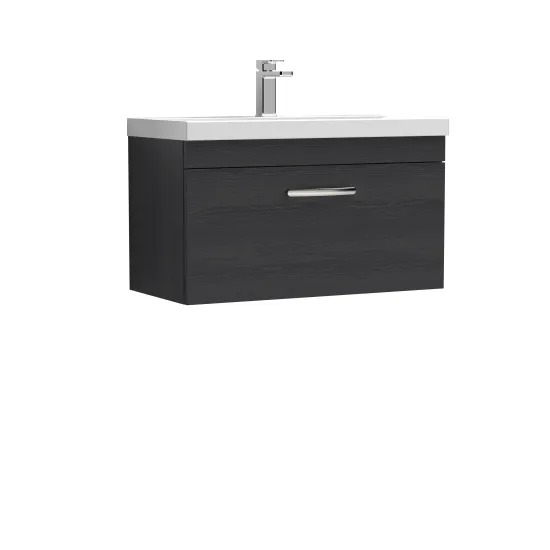 nuie Athena Wall Hung Single Drawer Vanity With Mid-Edge 1 Tap Hole Ceramic Basin 800mm - Hacienda Black
