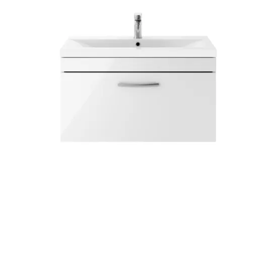 nuie Athena Wall Hung Single Drawer Vanity With Mid-Edge 1 Tap Hole Ceramic Basin 800mm - Gloss White