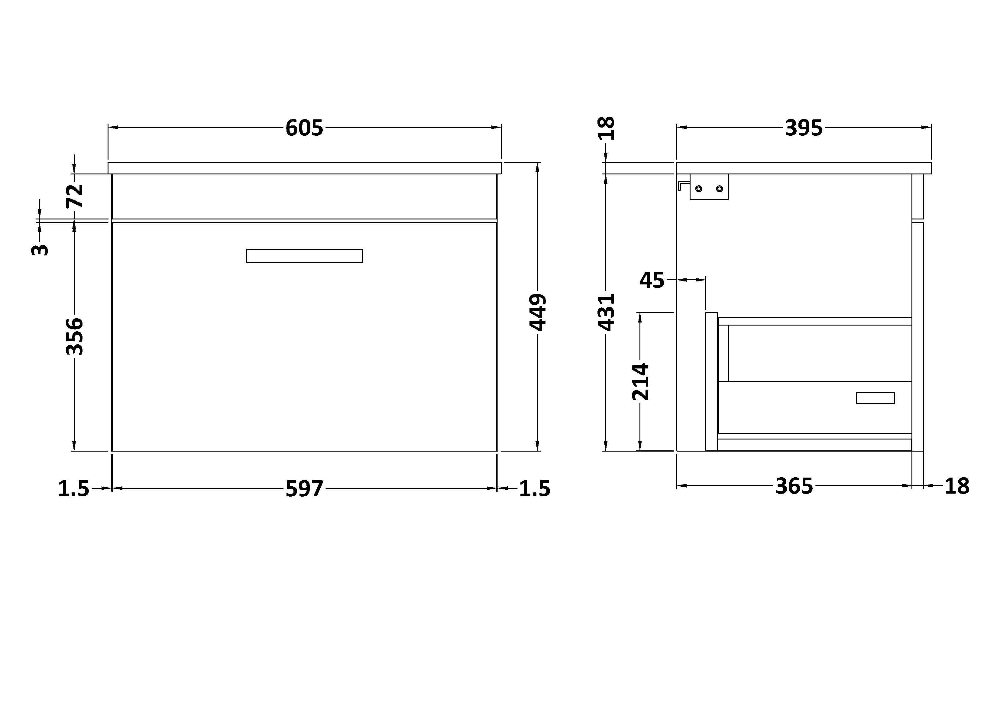 Athena Wall Hung Single Drawer Vanity With Minimalist 1 Tap Hole Basin 600mm