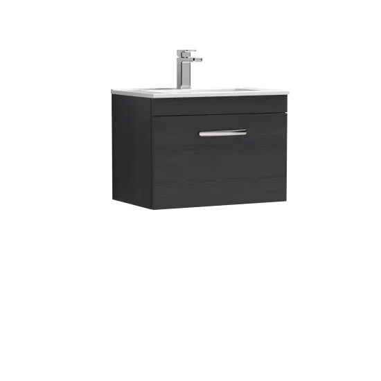 nuie Athena Wall Hung Single Drawer Vanity With Minimalist 1 Tap Hole Ceramic Basin 600mm - Hacienda Black