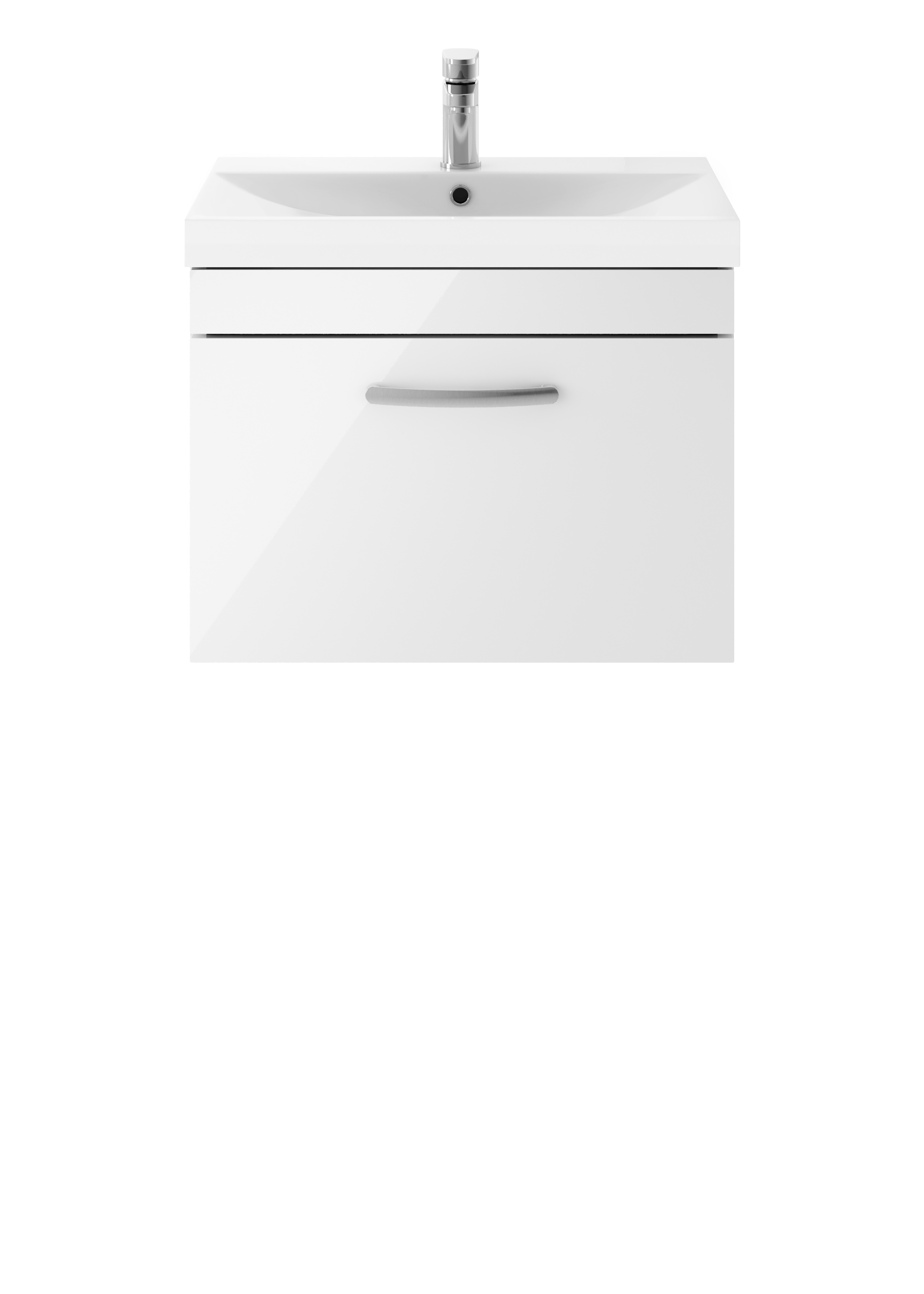 nuie Athena Wall Hung Single Drawer Vanity With Thin-Edge 1 Tap Hole Ceramic Basin 600mm - Gloss White