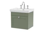 nuie Classique Wall Hung 1 Drawer Vanity Basin Unit & 1 Tap Hole Fireclay Basin, 500mm - Satin Green