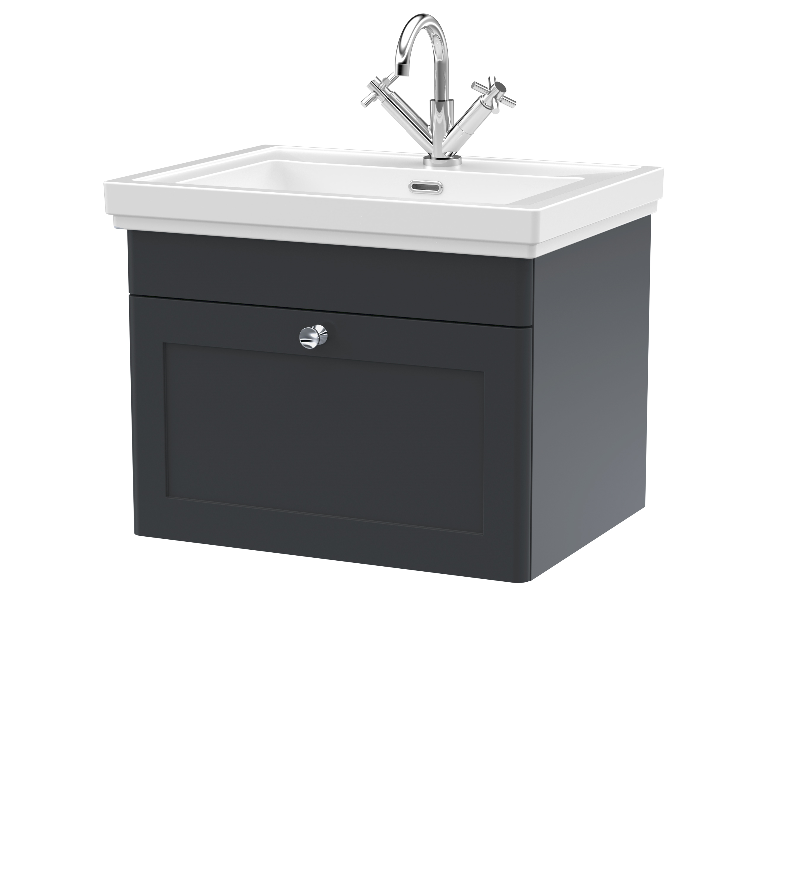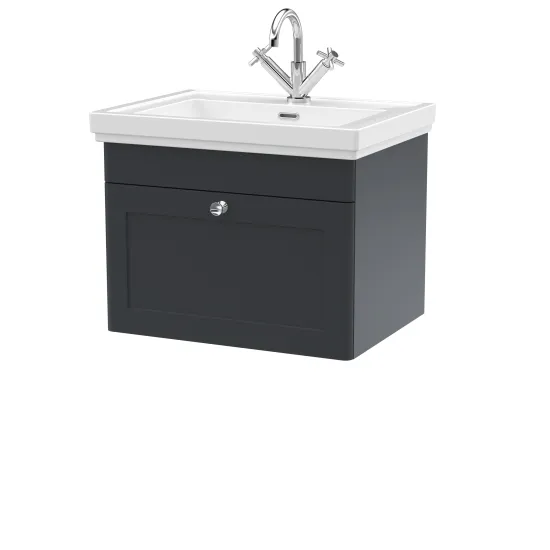 nuie Classique Wall Hung 1 Drawer Vanity Basin Unit & 1 Tap Hole Fireclay Basin, 600mm - Satin Anthracite