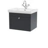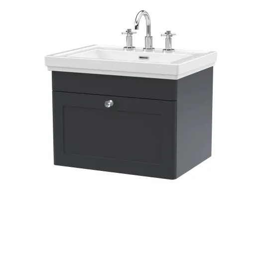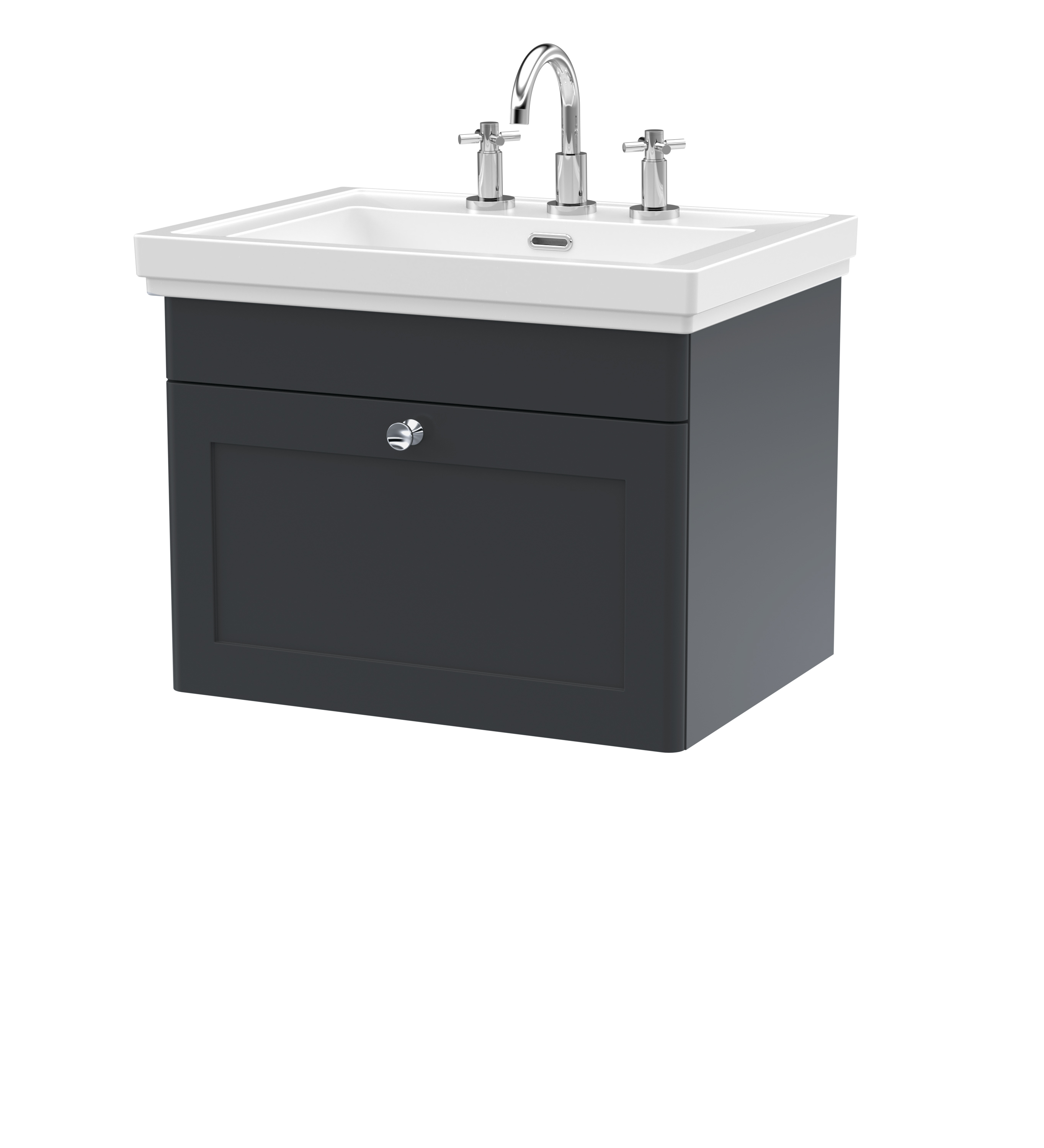 nuie Classique Wall Hung 1 Drawer Vanity Basin Unit & 3 Tap Hole Fireclay Basin, 600mm - Satin Anthracite