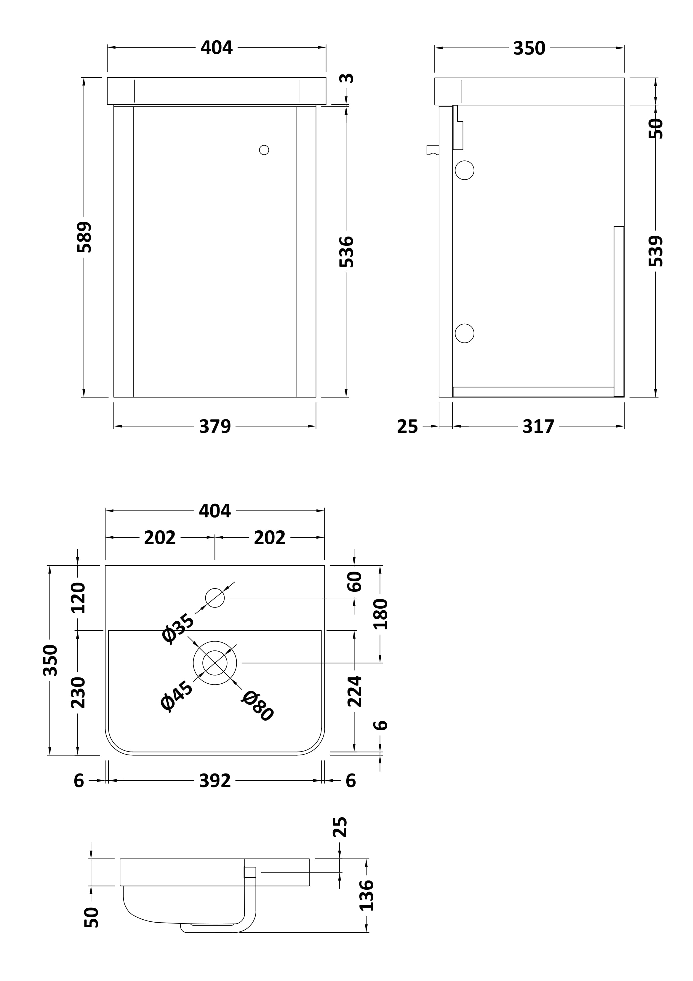Core 400mm Wall Hung 1 Door Vanity Unit & Basin