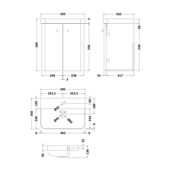 Core 500mm Wall Hung 1 Door Vanity Unit & Basin