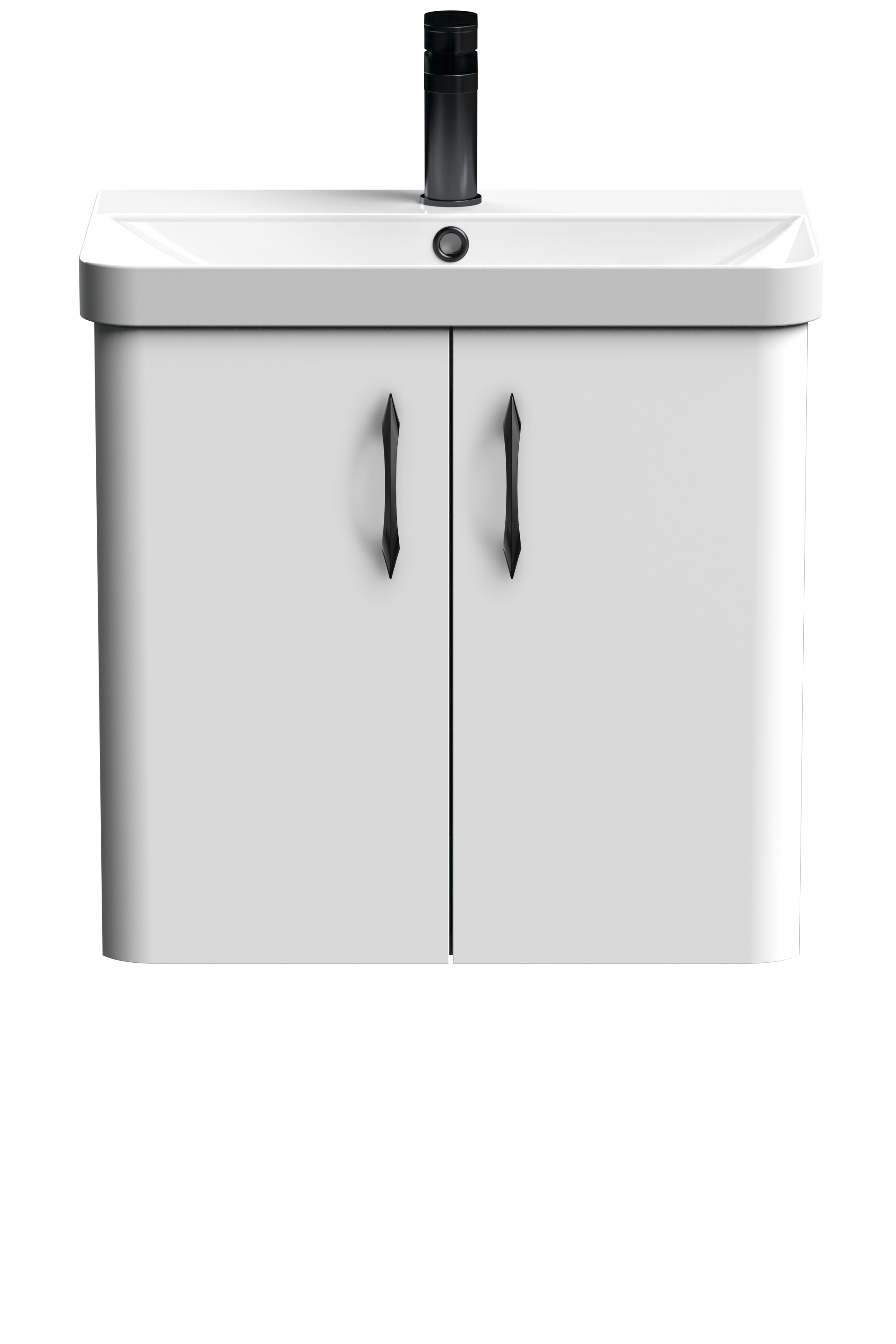 Nuie Core 600mm Wall Hung 1 Door Vanity Unit & Basin - White