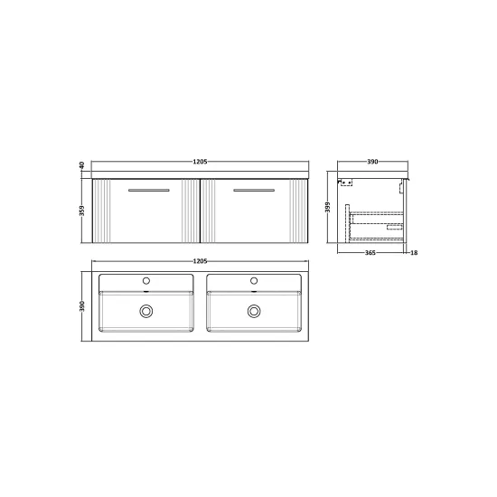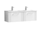 Part fluted design ideal for a striking art deco styled bathroom. Stunning satin finish. Soft close doors and drawers ensures peace ensues throughout your home. Supplied rigid for easy installation. Double polymarble basin pre-drilled with 2 tap holes.