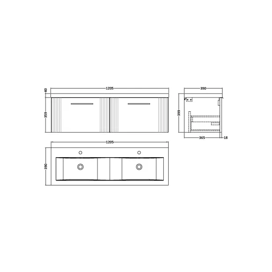 Deco 1200mm Wall Hung 2-Drawer Vanity & Double Basin
