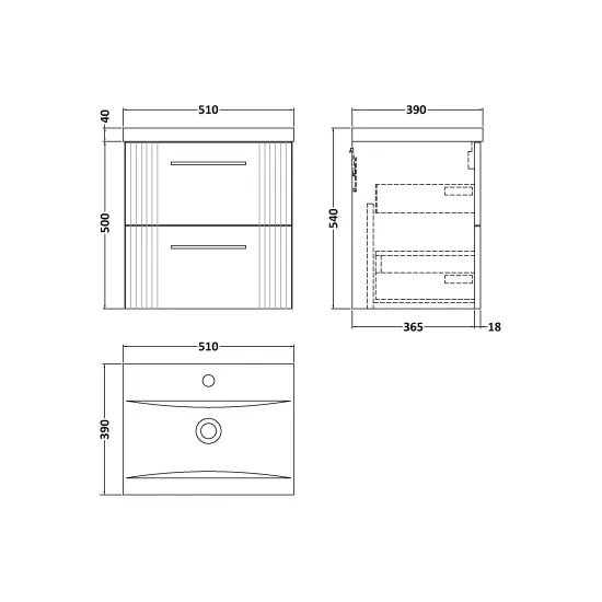 Deco 500mm Wall Hung 2-Drawer Vanity & Minimalist Basin