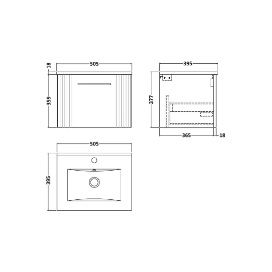 Deco 500mm Wall Hung Single Drawer Vanity & Minimalist Basin