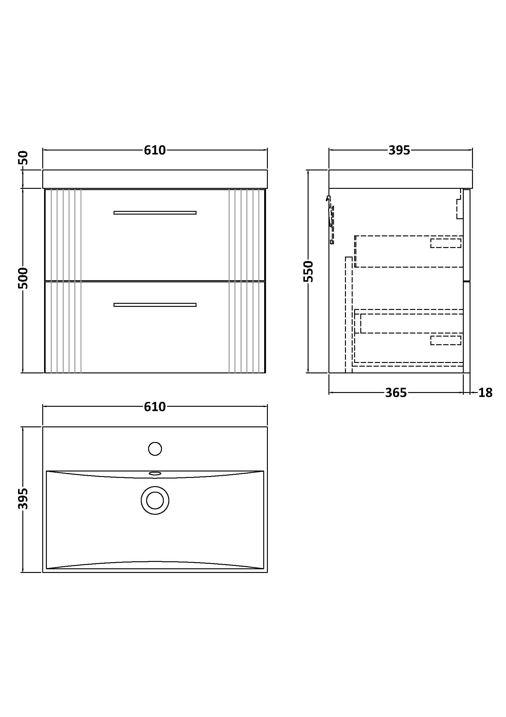 Deco 600mm Wall Hung 2-Drawer Vanity & Minimalist Basin