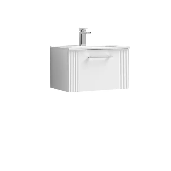 nuie Deco 600mm Wall Hung Single Drawer Vanity & Minimalist Basin - Satin White