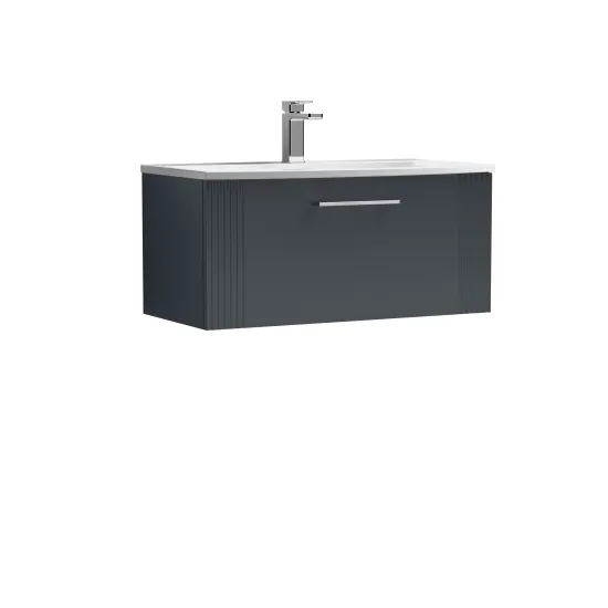 nuie Deco 800mm Wall Hung Single Drawer Vanity & Curved Basin - Satin Anthracite