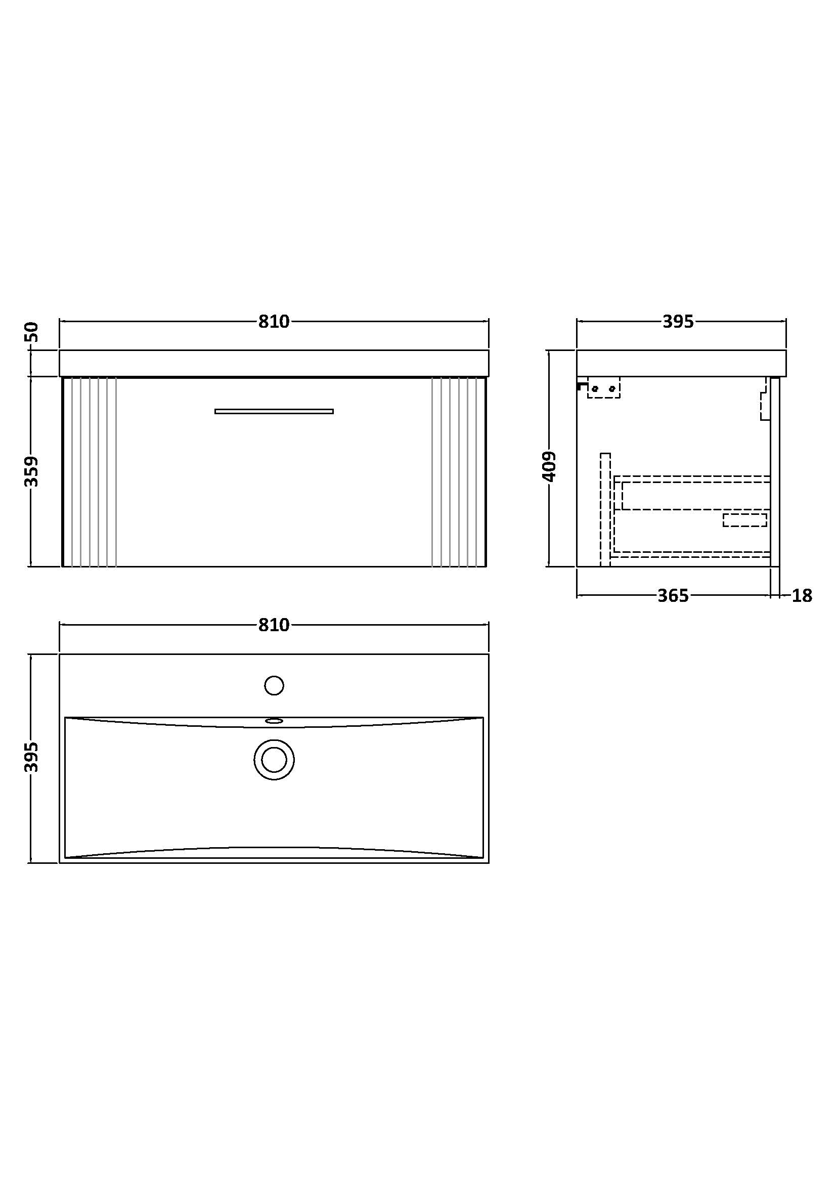 Deco 800mm Wall Hung Single Drawer Vanity & Mid-Edge Basin