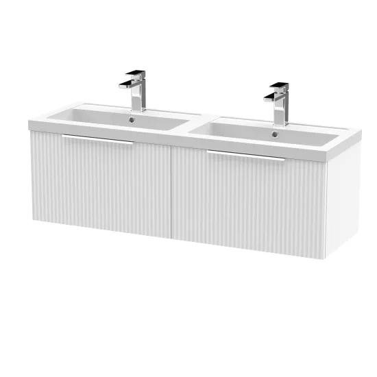 Hudson Reed Fluted 1200mm Wall Hung 2-Drawer Vanity and Double Basin - Satin White