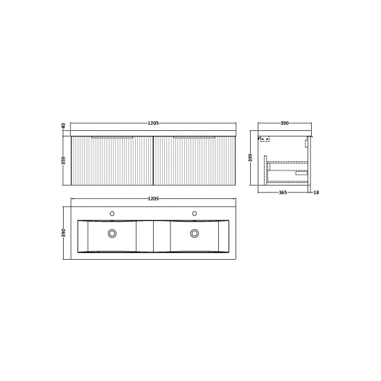 Fluted 1200mm Wall Hung 2-Drawer Vanity and Double Basin