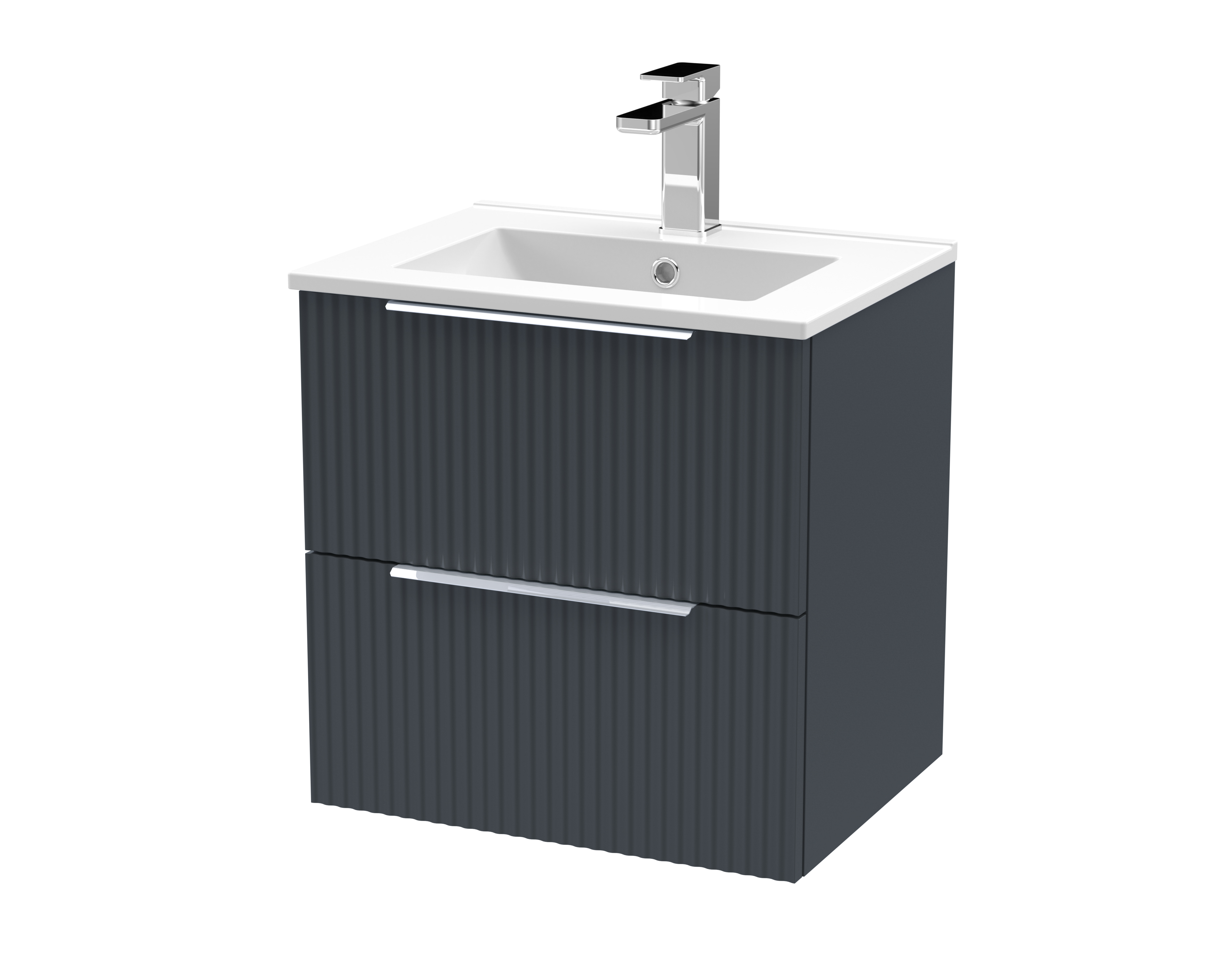 Hudson Reed Fluted 500mm Wall Hung 2-Drawer Vanity and Minimalist Basin - Satin Anthracite