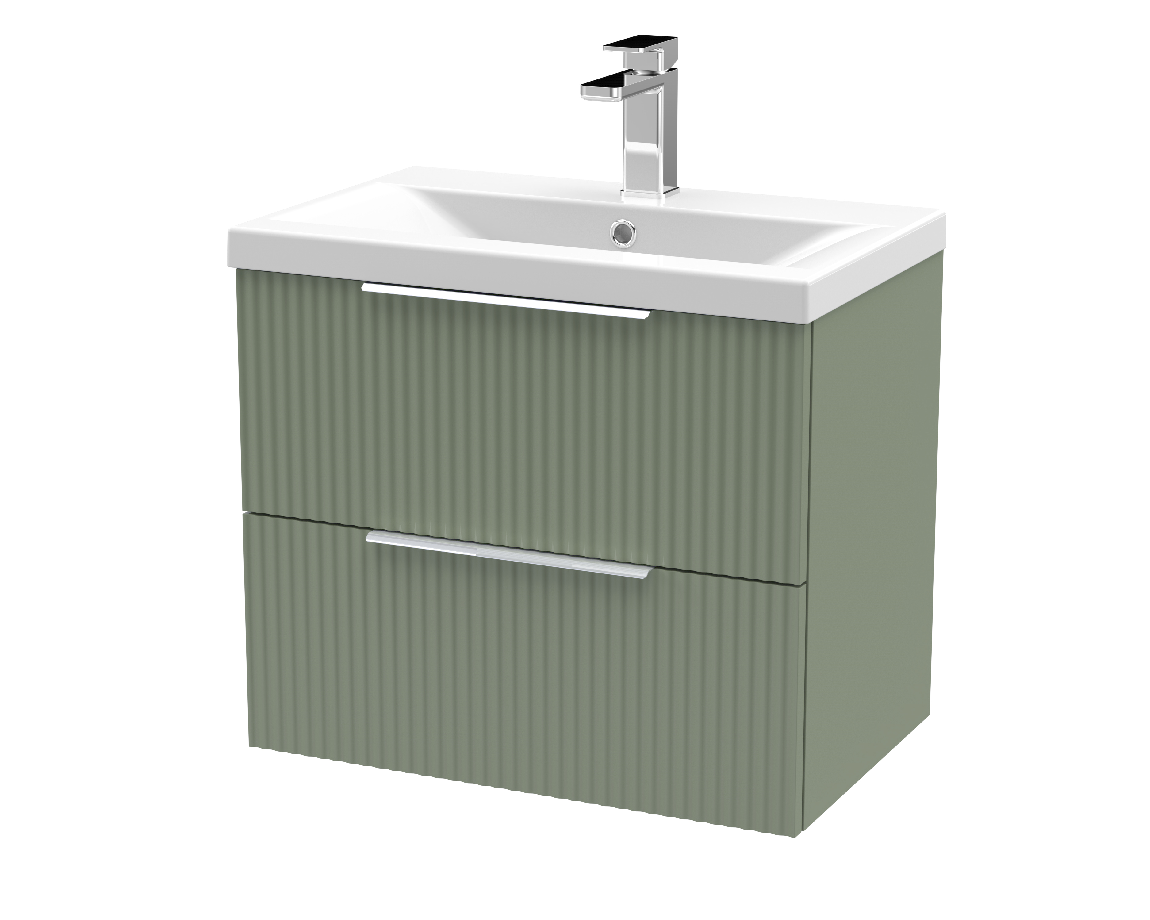 Hudson Reed Fluted 600mm Wall Hung 2-Drawer Vanity and Mid-Edge Basin - Satin Green