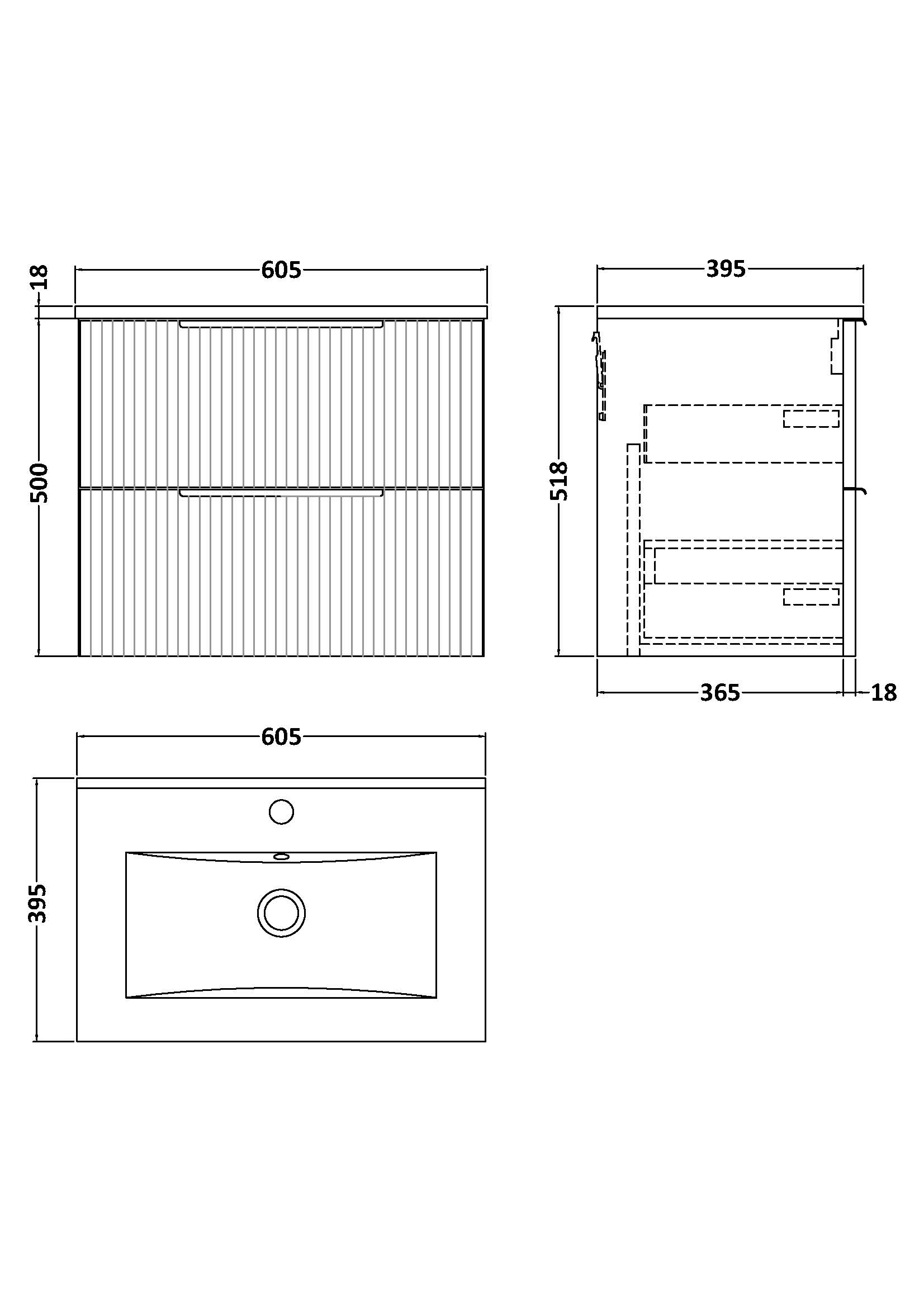 Fluted 600mm Wall Hung 2-Drawer Vanity and Minimalist Basin