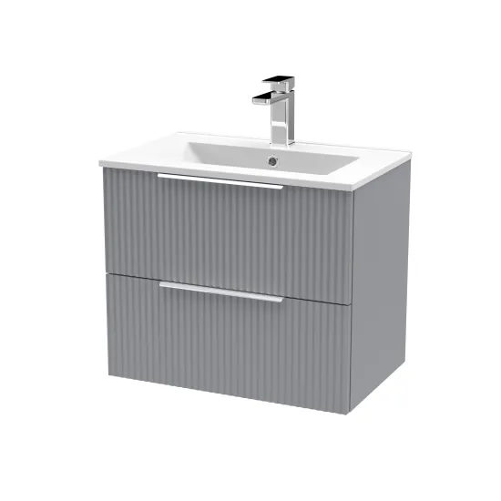 Hudson Reed Fluted 600mm Wall Hung 2-Drawer Vanity and Minimalist Basin - Satin Grey