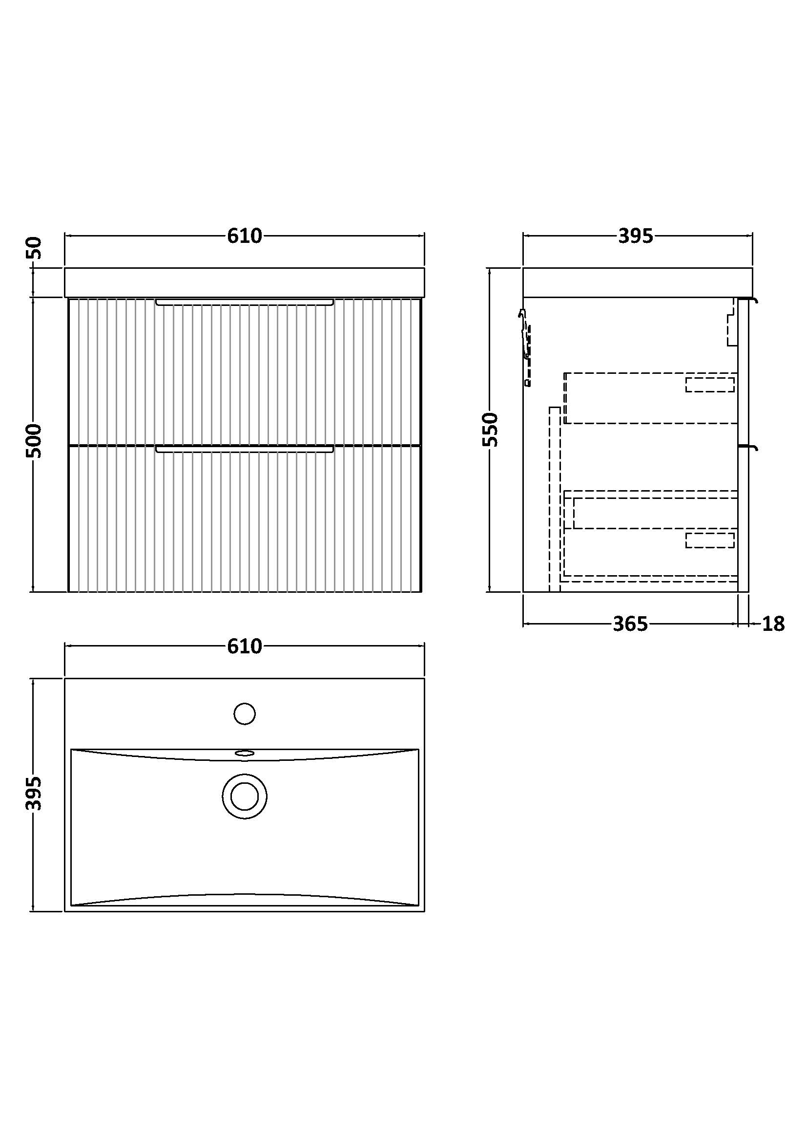 Fluted 600mm Wall Hung 2-Drawer Vanity and Thin-Edge Basin