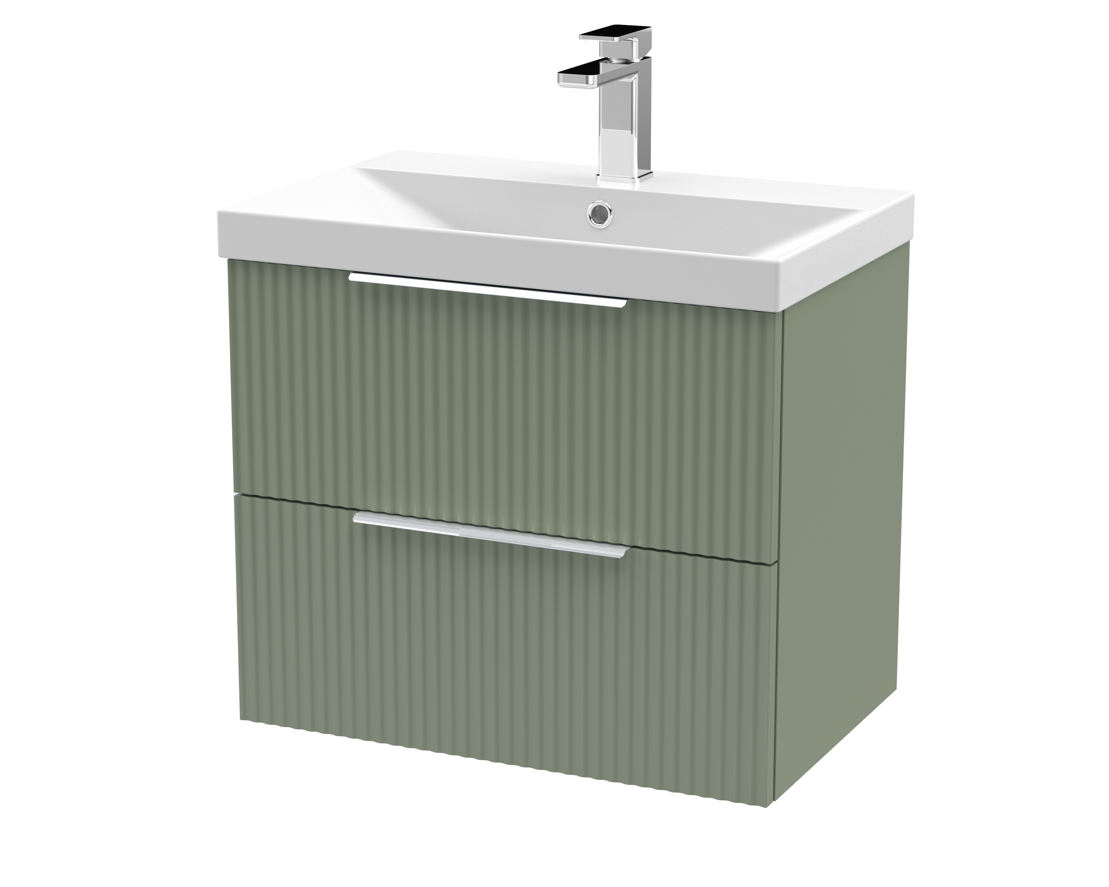 Hudson Reed Fluted 600mm Wall Hung 2-Drawer Vanity and Thin-Edge Basin - Satin Green