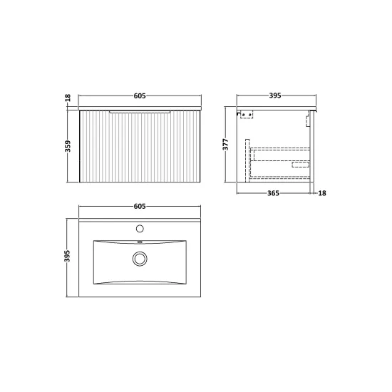 Fluted 600mm Wall Hung Single Drawer Vanity and Minimalist Basin