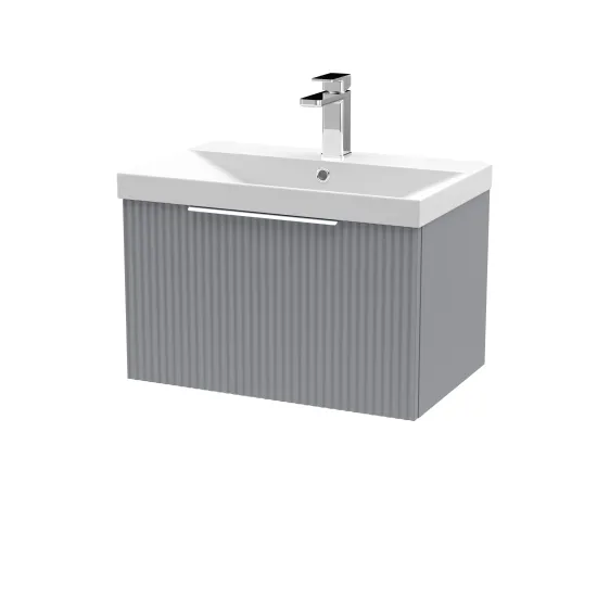 Hudson Reed Fluted 600mm Wall Hung Single Drawer Vanity and Thin-Edge Basin - Satin Grey