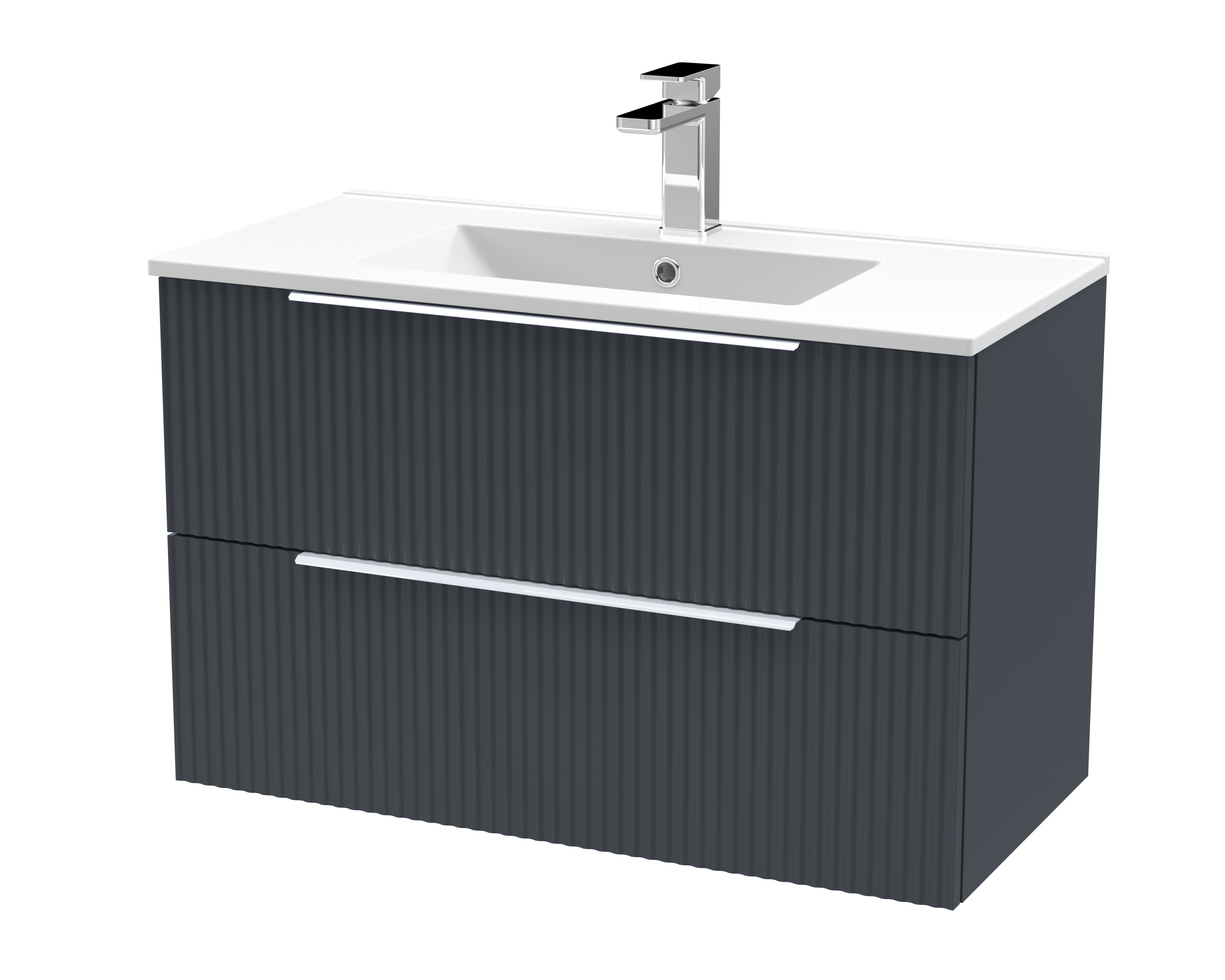 Hudson Reed Fluted 800mm Wall Hung 2-Drawer Vanity and Minimalist Basin - Satin Anthracite