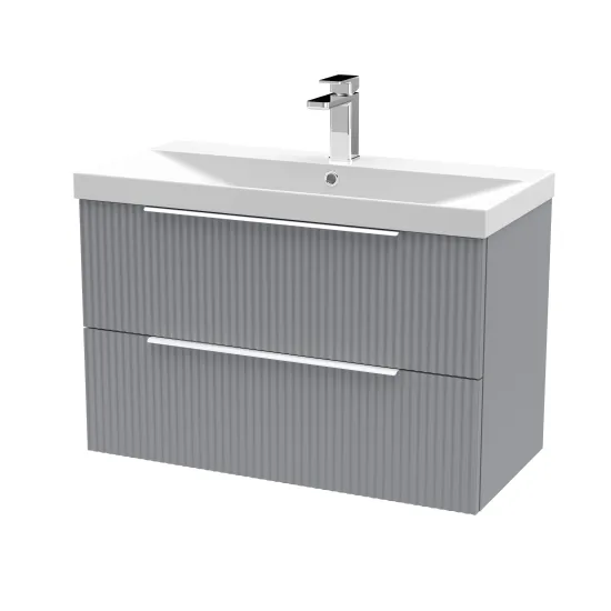 Hudson Reed Fluted 800mm Wall Hung 2-Drawer Vanity and Thin-Edge Basin - Satin Grey
