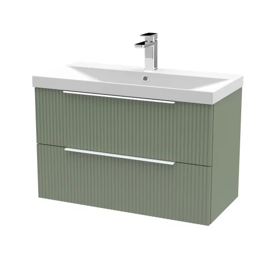 Hudson Reed Fluted 800mm Wall Hung 2-Drawer Vanity and Thin-Edge Basin - Satin Green
