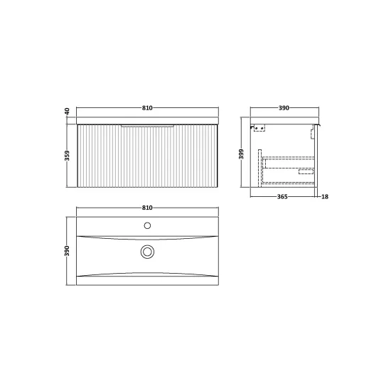 Fluted 800mm Wall Hung Single Drawer Vanity and Mid-Edge Basin