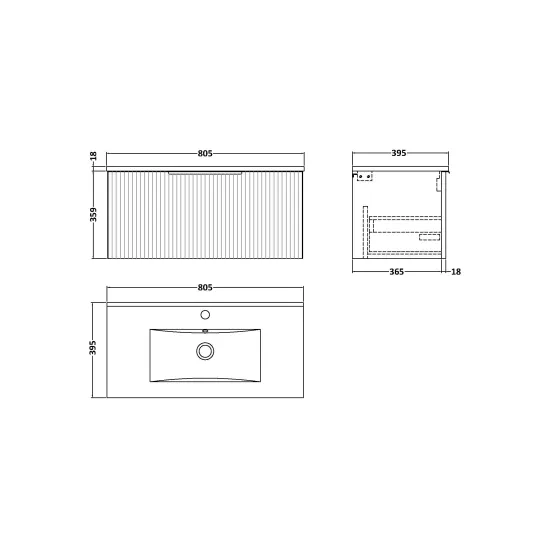 Fluted 800mm Wall Hung Single Drawer Vanity and Minimalist Basin