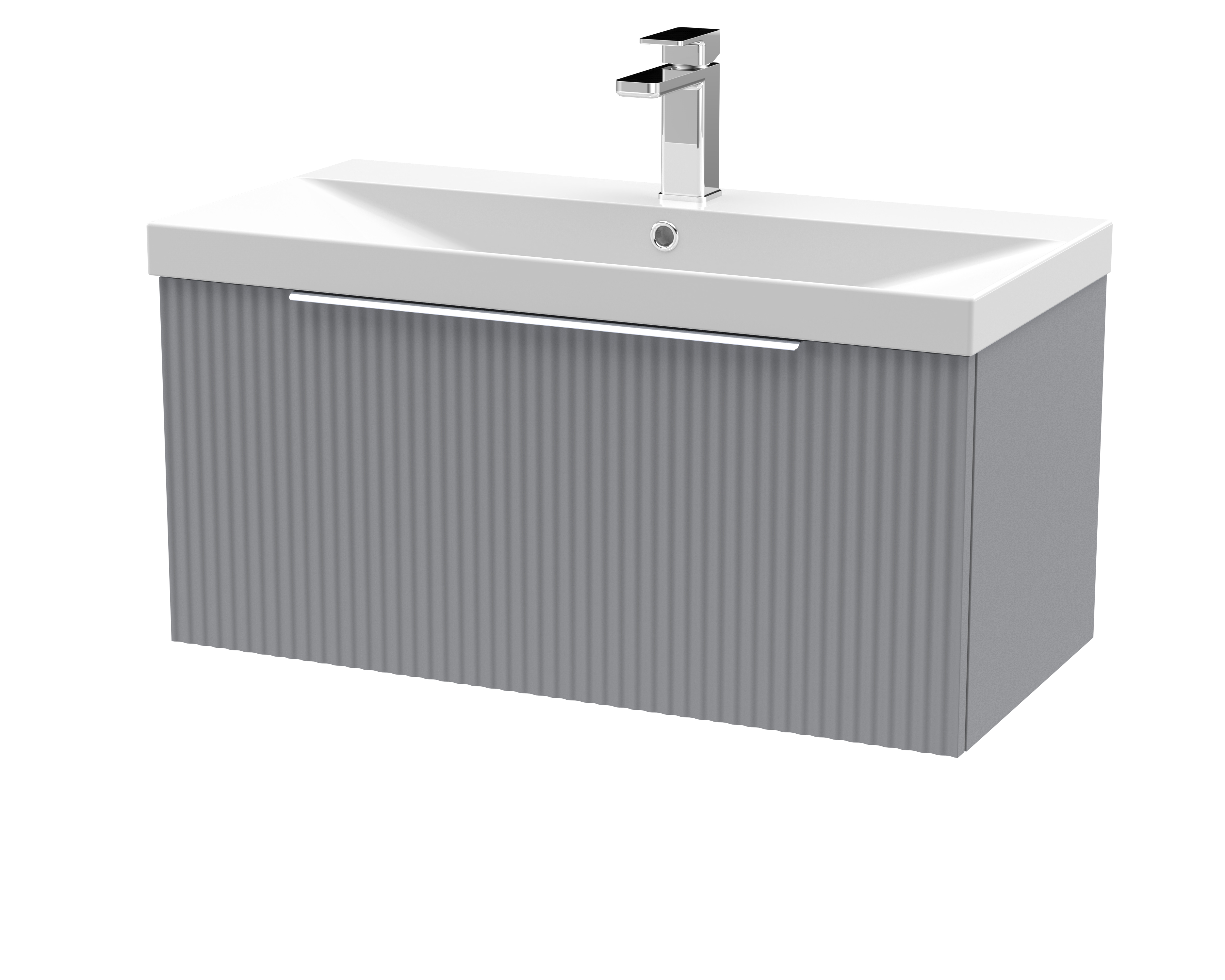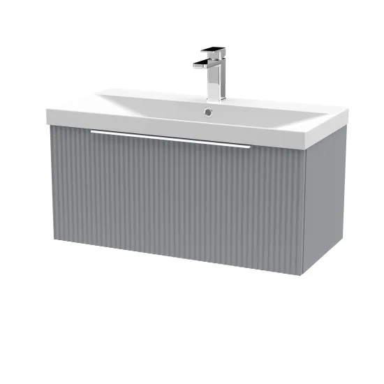 Hudson Reed Fluted 800mm Wall Hung Single Drawer Vanity and Thin-Edge Basin - Satin Grey