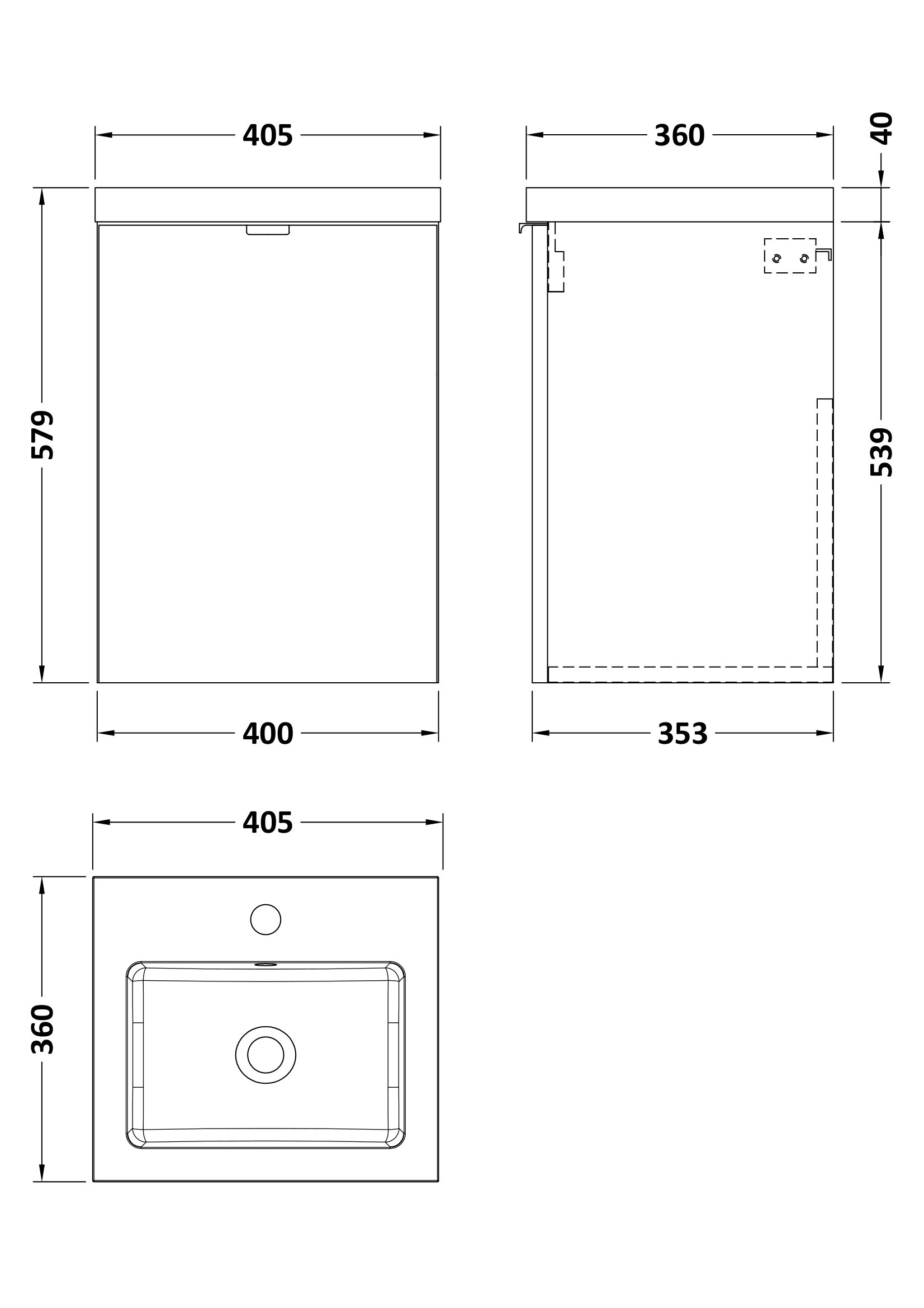 Fusion Wall Hung 1 Door Vanity Unit & Polymarble Basin 400mm